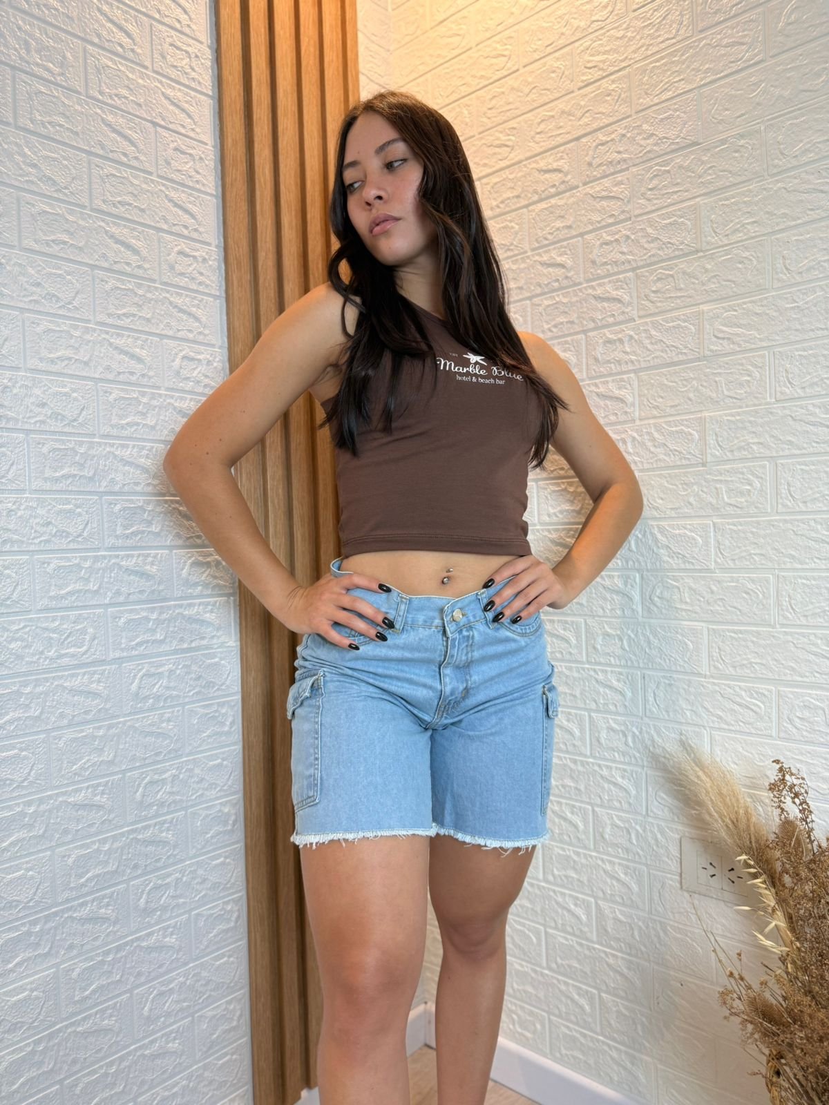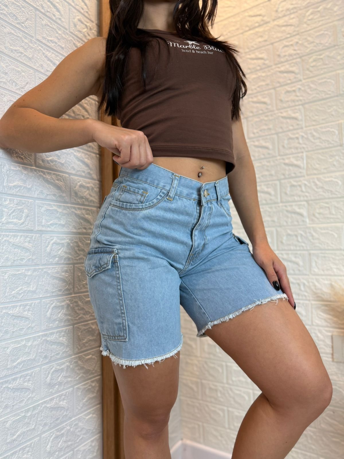Short Mom Pinza Celeste