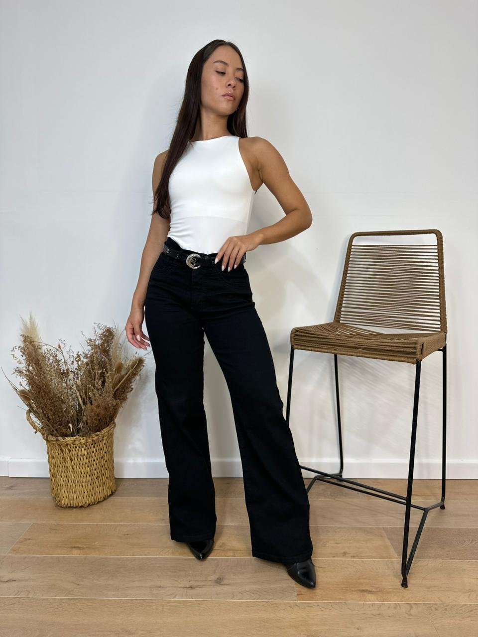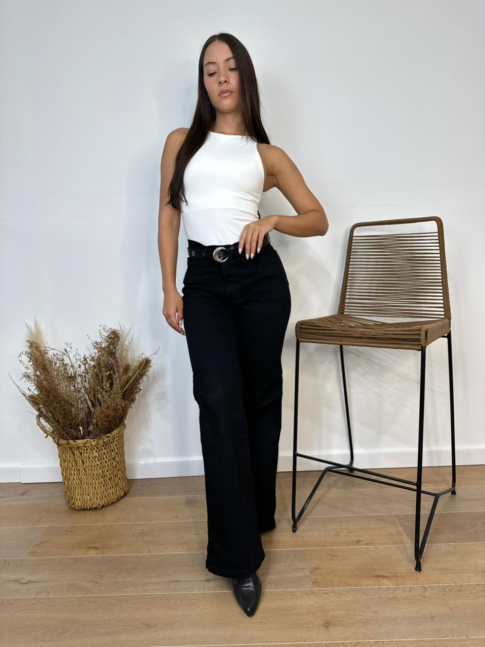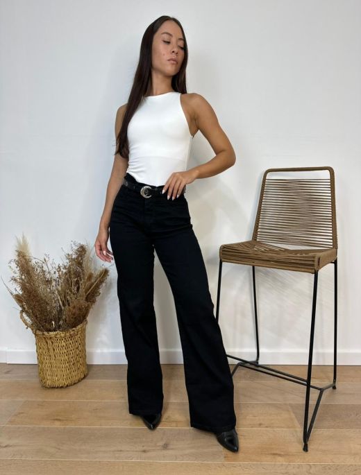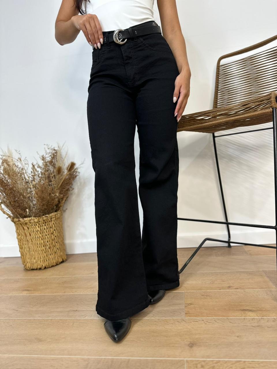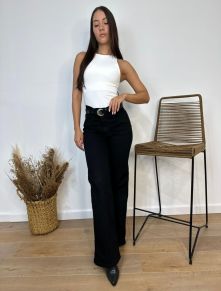 Wide leg elastizado negro